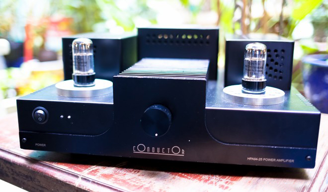 Ngoài công tắc tắt mở, HPA 94-25 còn được trang bị thêm chiết áp Gain Out để thuận tiện trong phối ghép. Ampli do nhóm Conductor sản xuất với phần nguồn được đưa lên trên mặt máy và bao bọc bằng các hộp kim loại chống nhiễu, tách biệt hoàn toàn với phần xử lý âm thanh ở phía dưới.